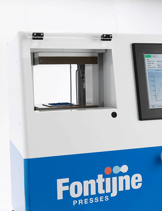 Depending on the model – 150 or 300 – the press range goes up to 150 or 300 kN at 300°C. Regardless of the model or settings used, the results will always be accurate and consistent. Thanks to its small footprint and its 230V connection, the LabTop can easily get installed in any lab. Its ergonomic design and straightforward touchscreen interface are highly appreciated by lab technicians.